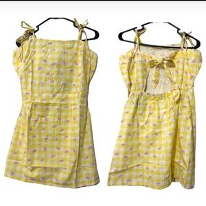 NWT INFLUENCE ASOS TIE BACK MINI DRESS IN YELLOW GINGHAM FLORAL-MULTI Sz 8/ M