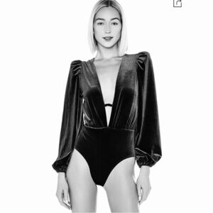 NWT IORANE Velvet Bodysuit in Black Velvet M