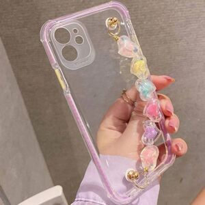 NWT IPhone 13 Pro Max Clear Colorful Case with Hearts Hand Strap