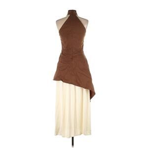 NWT IQ Collection Brown Cream Layered Halter Neck Sleeveless Dress XL