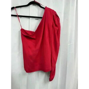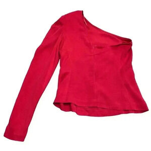 NWT IRO 36 (S) Red Lavrim Puff Shoulder Framboise Asymmetrical Long Sleeve Top