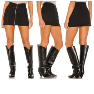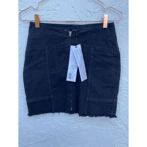 NWT IRO Binda Womens Front Zip Frayed Denim Mini Skirt Black Sz 34