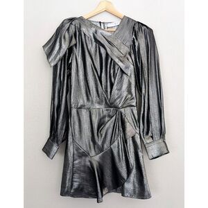 NWT IRO Kinao Silk Mini Dress in silver and metallic black, US 2 / FR 36, luxury designer cocktail dress, high-end party dress, French designer evening dress, shimmering silk mini dress, metallic silk cocktail dress, IRO Paris luxury fashion, IRO evening dress silver
