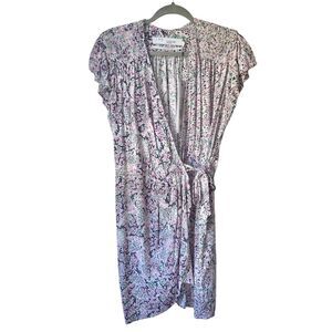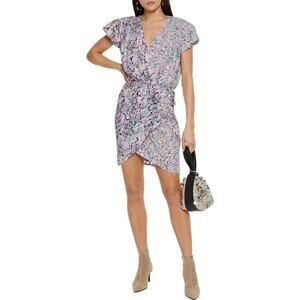 NWT IRO Manza Purple Floral Print Ruffle Sleeve Wrap Mini Dress Size 36 US XS