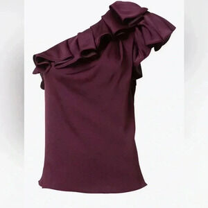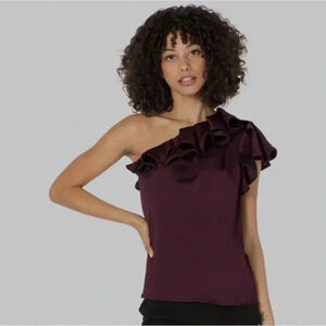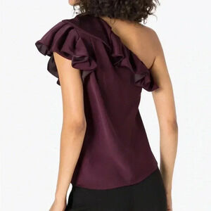NWT IRO Paris Lili One Shoulder Asymmetrical Ruffle Top Burgundy S