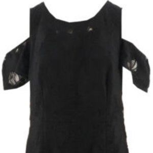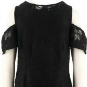 Features: floral lace overlay, cutout cold shoulder, crew neckline, lining, empire waist, dart bust stitching