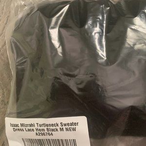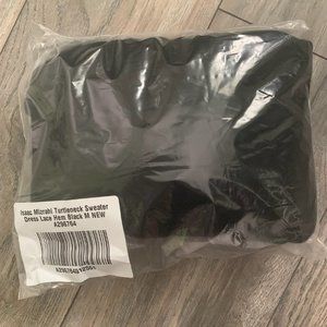 NWT (NEW IN BAG) ISAAC MIZRAHI LIVE! LACE HEM TURTLENECK SWEATER DRESS SIZE MEDIUM. COLOR IS BLACK.