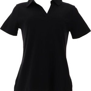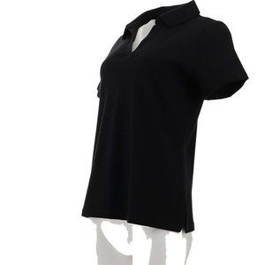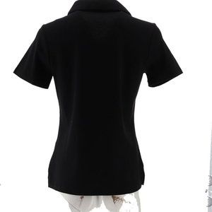 NWT ISAAC MIZRAHI SHORT SLEEVE PIMA COTTON POLO TOP JET BLACK XXS