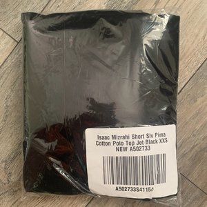 NWT (NEW IN BAG) ISAAC MIZRAHI SHORT SLEEVE PIMA COTTON POLO TOP JET BLACK SIZE XXS.
