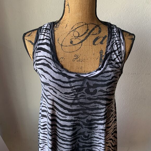NWT ISABELLA RODRIGUEZ Scoop Slinky A-line Tank Top Cold Shoulder Blk Tiger Sz L