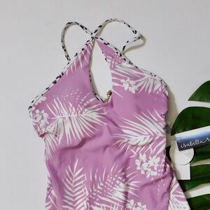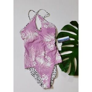NWT!! ISABELLA ROSE Reversible Animal Lavender Palm Print Swimsuit Large