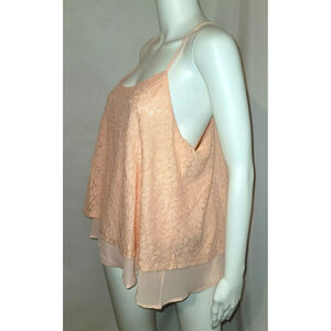 Gorgeous peach lace layered halter top. Thin straps, lace is fully lined with very lightweight, breezy fabric. Absolutely beautiful piece of clothing. New!