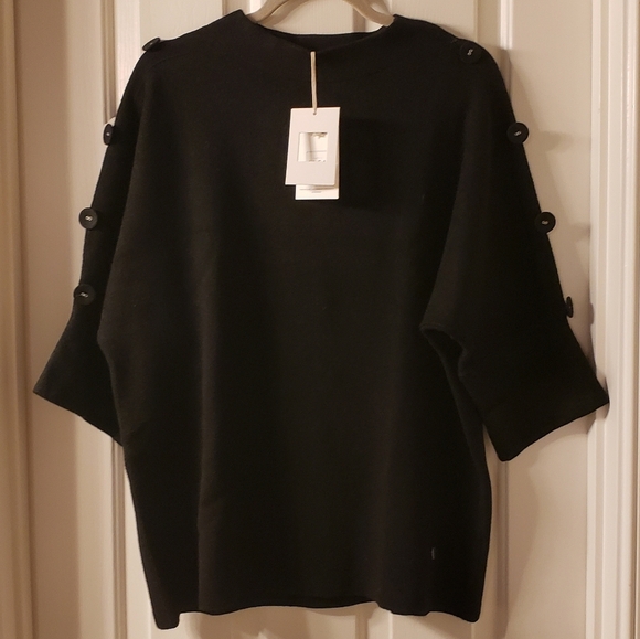 NWT! ITALIAN IMPORT Adorable Black Sweater w/ Button Adorned Sleeves (OS)
