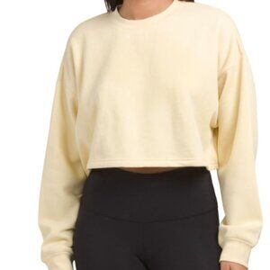 NWT IVL COLLECTIVE Women's Cropped fleece lined Crew Neck Soft Yellow Sweatshirt