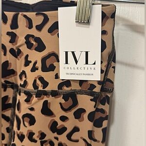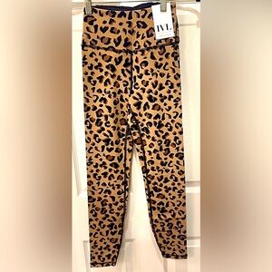 Stylish leopard print leggings by IVL. Features a bold animal pattern in tan and black.size 2