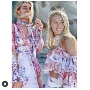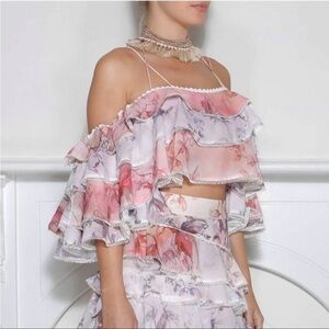 NWT IXIAH Off Shoulder Tiered Ruffle Watercolor Floral Camisole Crop Tank Top 4