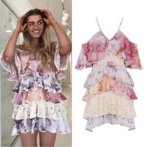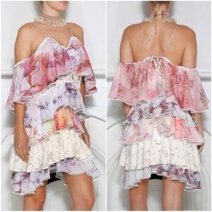 NWT IXIAH Watercolor Tiered Floral Ruffle Lace Frill Trim Festival Mini Dress 4