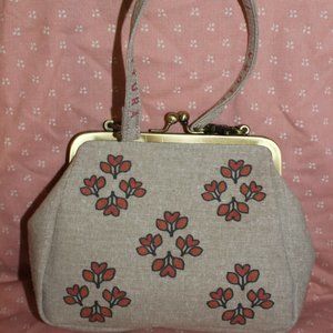 Front has some embroidery work leaves or similar along top and bottom corners.
