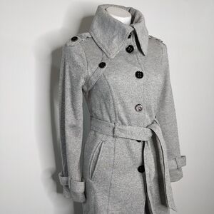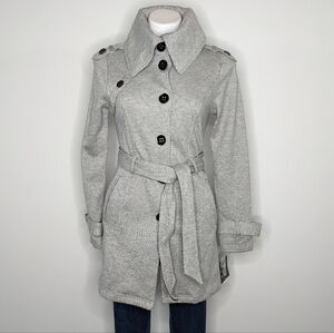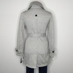 NWT IZ Byer black white high collar button up tie waist winter jacket S