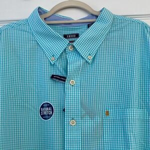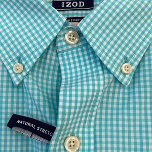 NWT IZOD Long Sleeve Button Down Shirt Turquoise Gingham Big and Tall Size 4X