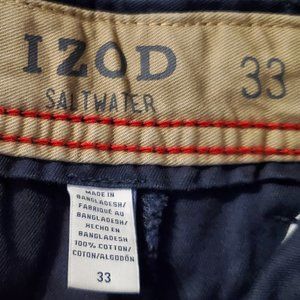 NWT IZOD SALTWATER MEN'S FLAT FRONT CARGO BLUE SHORTS SIZE 33W