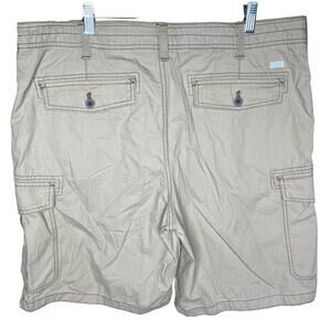 Item is New With Tags. Khaki, fisherman Utility shorts, 6 pocket design, button & Velcro closures.