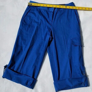 NWT IZOD Womens Stretch Adjustable Length Cargo Pants Size 2 in Blue. Please See Pictures for exact Pants and Measurements! 97% Cotton and 3% Spandex.