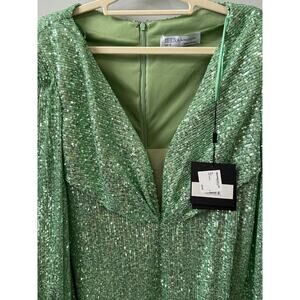 NWT Ieena For Mac Duggal Sequined Bishop Sleeve Sheath Dress Light Green Size 10