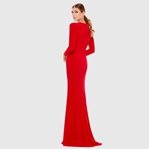 NWT Ieena for MacDuggal Gathered Pearl Long Sleeve Keyhole Gown Red 2 #9655 - 59