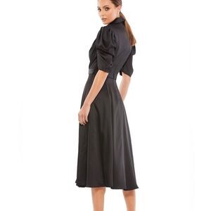 NWT Ieena for Mac Duggal Black Satin Lapel Puff Sleeve Tea Length Dress size 14 Style #26628