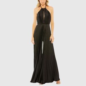 NWT Ieena for Mac Duggal Black Halter Neck Keyhole Detail Pleated Jumpsuit sz 2 style number 27457