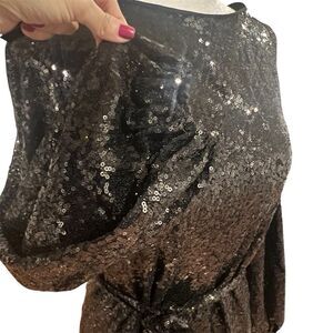 NWT Ieena for Mac Duggal women's sequin belted midi dress black size xs/2