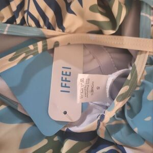 NWT Iffei One Piece Leaf Printed One Shoulder Monokini Ruffle