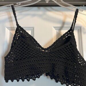 Illa Illa Womens Crop Top Size M/L Black Crochet Brami Top Festival