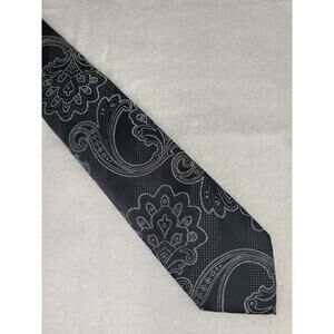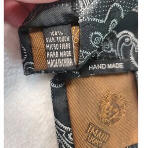 NWT Imani Uomo handmade black silver paisley silk tie and pocket square