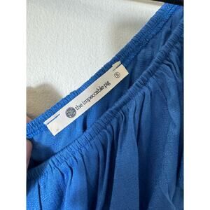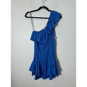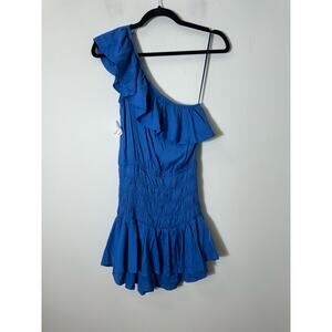 NWT Impeccable Pig Blue One Shoulder Smocked Mini Dress Sz S. Ruffled shoulder, smocked waist, fabric resembles linen. Cute going out dress. New with tags.
