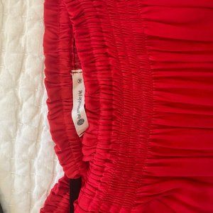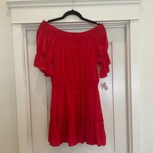 NWT, and never been worn. Beautiful red off the shoulder mini dress in a soft and cool fabric with confortable and flattering cincing detail. It would be so perfect for game day! I bought this dress in college and never had a chance to wear it. She needs a new wonderful home!