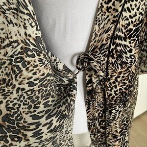 NWT In Bloom by Jonquil Leopard Print Satin Wrap Robe S/XS