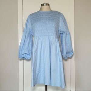 NWT In The Beginning Long Sleeve Smocked Mini Dress Blue L