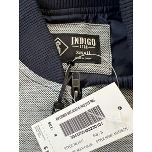NWT! Indigo Star Navy White Aqua Space Dye Twill Madison Bomber Shirt Jacket S