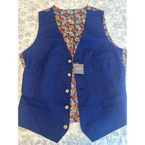 NWT Indochino Sugar Skull Navy Blue Wool Vest With Unique Lining, 100% wool