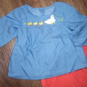 NWT Infant Girls Fiream Ducks Chambray Top & Orange Corduroy Bloomers sz 2/3 yrs