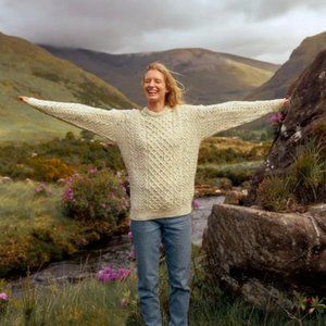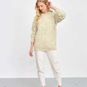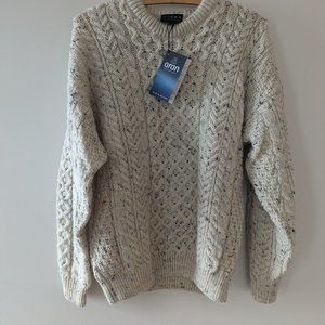 NWT - Inishbofin Traditional Aran Sweater - Flecked Cream ( Knives Out Style) -S