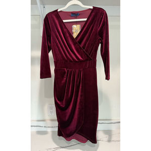 NWT InsNova Velvet Long-Sleeve Dress Body Con Wine Maroon Size Small