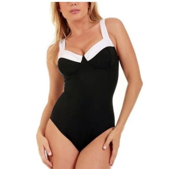 NWT Instant Figure 8 CONTRAST TRIM Tuxedo 1 Pc SWIMSUIT 13496P 96816