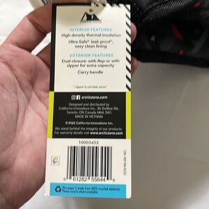 New with Tags, Arctic Zone, Boys, Insulated Lunch Bag, Black,geeen and Gray pattern. Can be used by adult or child. Two folding methods to accommodate smaller or larger lunches. 10in height x7in width x4in depth.