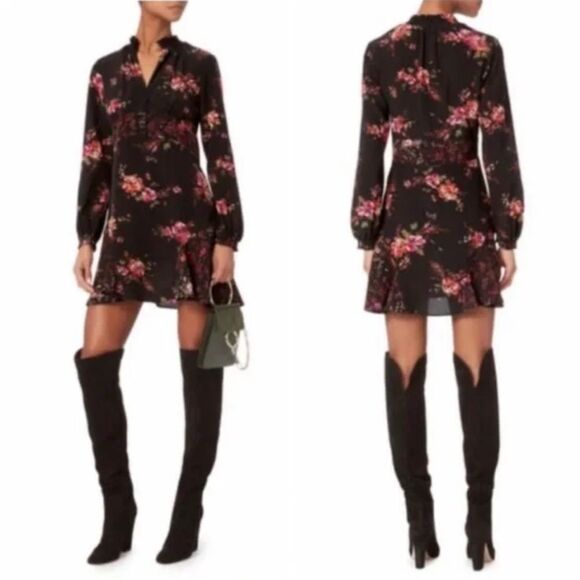 NWT Intermix Evie Silk Floral Victorian Silk Dress in Black Size 6