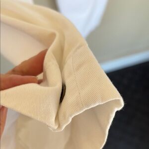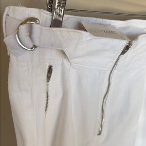Stylish white pants featuring convenient zippered pockets. Perfect for a sleek, modern look.