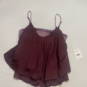 NWT Intimately Free People Dark Purple Sequin Combo Tank Top Size Large New