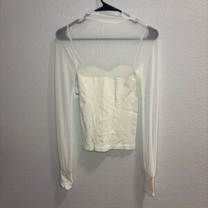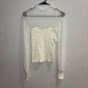 NWT Intimately Free People Light Up White Mesh Long Sleeve Top
